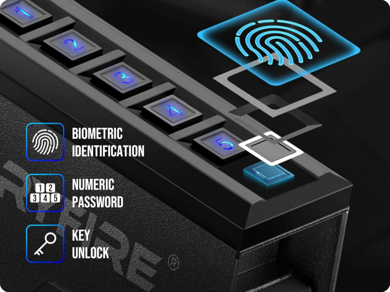 - [Fast & Secure Access] Featuring an upgraded semiconductor biometric fingerprint sensor, this fingerprint gun safe provides ultra-fast entry with a match time of less than 0.5 seconds. With three locking options including keypad, key, and fingerprint authentication, this handgun safe provides advanced security with up to 20 unique fingerprints stored.