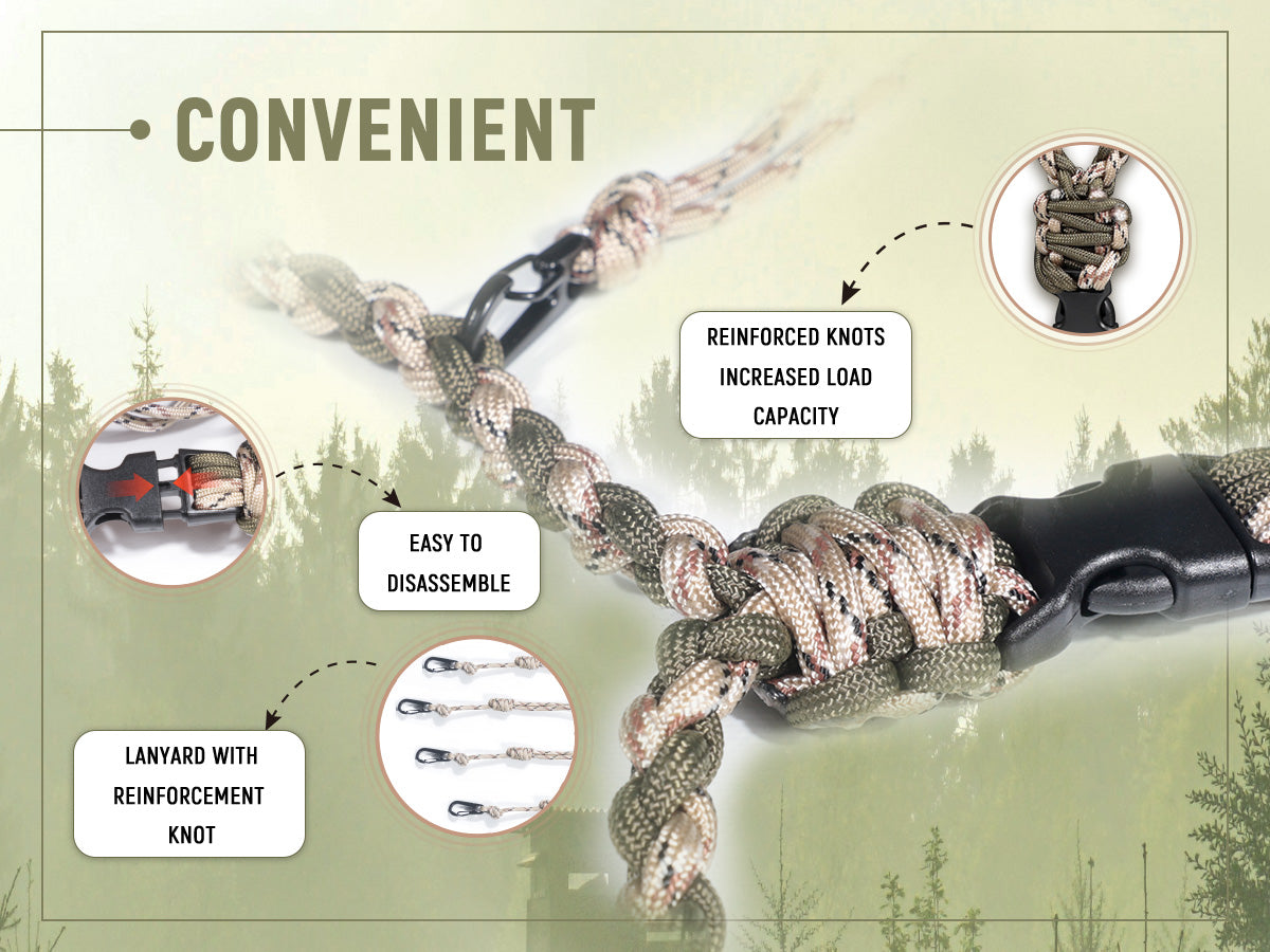 The GLORYFIRE Duck Call Lanyard is handmade from high-quality, military-grade 550lb paracord, designed to withstand tough environments. It securely holds up to 11 calls with adjustable loops and removable clips, protecting them from damage and keeping them organized. The wide, comfortable neck strap fits easily around any neck, even with bulky clothing. This durable, fade-resistant lanyard comes with a lifetime warranty, and we’re committed to ensuring your satisfaction. For any questions or issues, feel free to contact us!