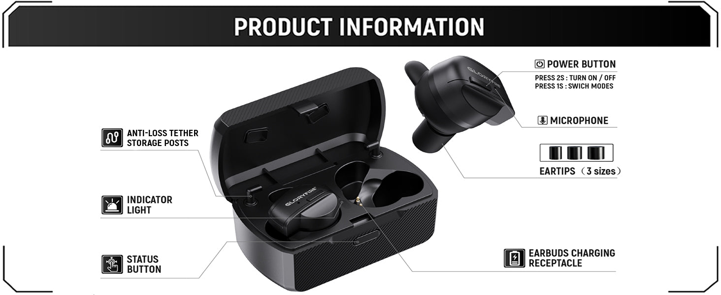 GLORYFIRE Shooting Ear Protection 26dB Noise Reduction Electronic Silencer Earbuds