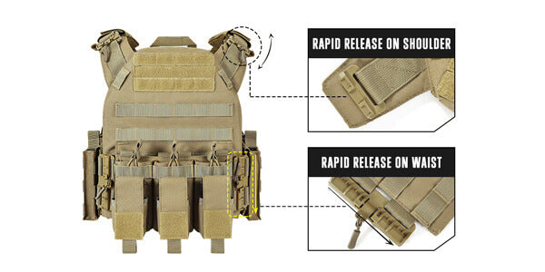 - [Functional and Quick to Use]: The tactical vest features rapid-open connectors on the shoulders and waist, making it easy to quickly put on and take off. The unique cummerbund with integrated pockets provides added protection and is ideal for those who need a plate carrier or body armor for extreme challenges. This tactical vest is perfect for military fans and professionals who demand the best.